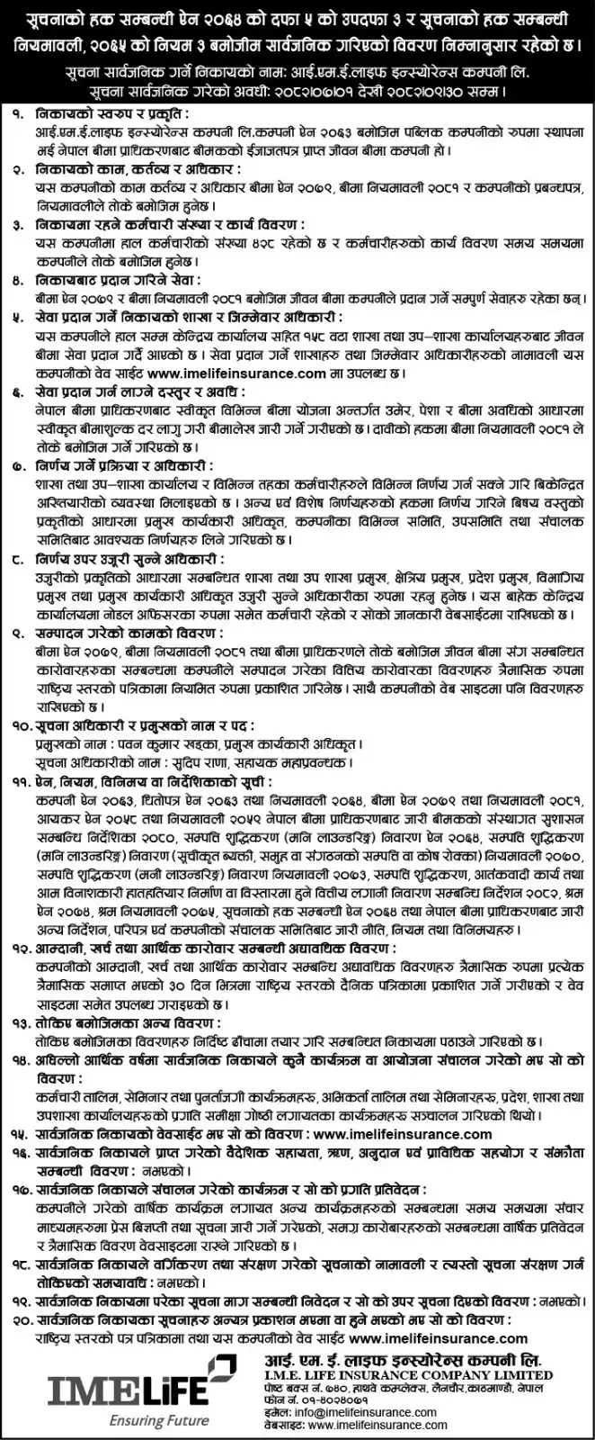 IMELIFE CALENDAR 2081